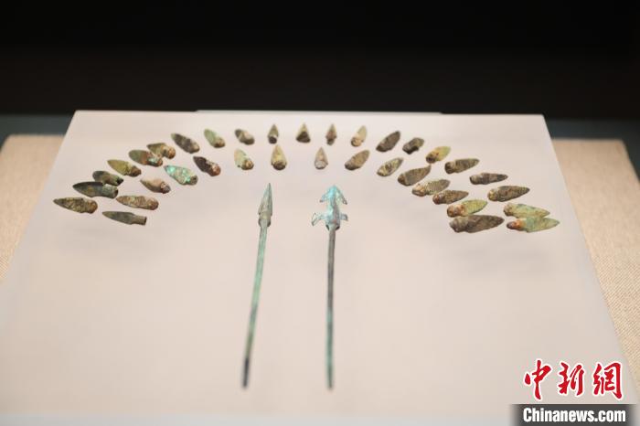 1月23日,甘肃省兰州市,甘肃简牍博物馆新年大展“塞防千里固家国——简牍中的长城岁月印记展”展陈的汉代铜箭和箭镞。中新社记者 李亚龙 摄