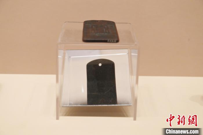 1月23日,甘肃省兰州市,甘肃简牍博物馆新年大展“塞防千里固家国——简牍中的长城岁月印记展”展陈的铜守卫牌。中新社记者 李亚龙 摄
