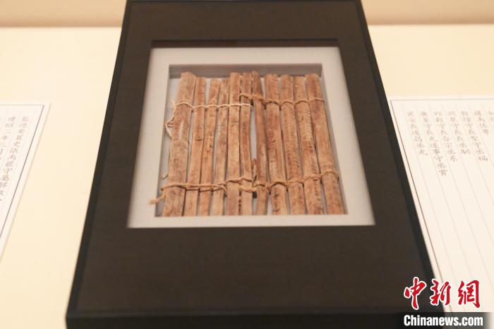 1月23日,甘肃省兰州市,甘肃简牍博物馆新年大展“塞防千里固家国——简牍中的长城岁月印记展”展陈的一级文物汉代《失亡传信册》。中新社记者 李亚龙 摄