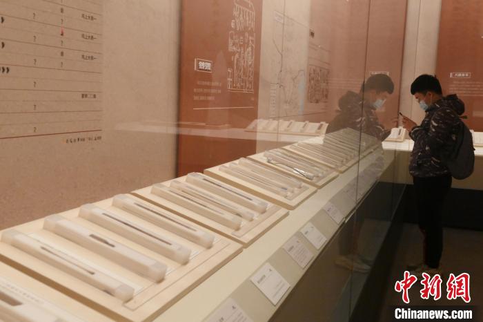 1月23日,位于甘肃省兰州市的甘肃简牍博物馆内,游人参观新年大展“塞防千里固家国——简牍中的长城岁月印记展”。中新社记者 李亚龙 摄